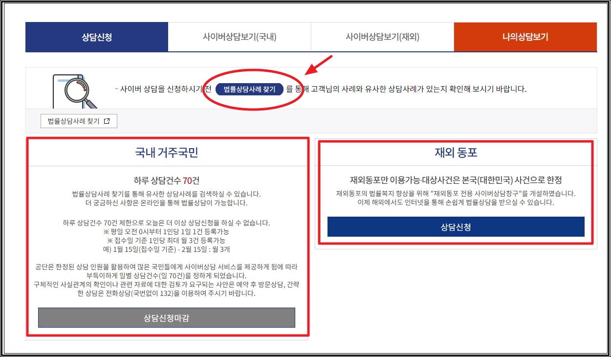 5. 통화 외에 다른 방식으로 법률상담을 무료로 받고 싶다면 법률구조 공단 사이트에 접속해 보세요. 이곳에서는 여러 가지 법률 관련 민원 서비스를 제공하고 있습니다. 정말 서민들에게 도움이 많이 되는 곳이죠.