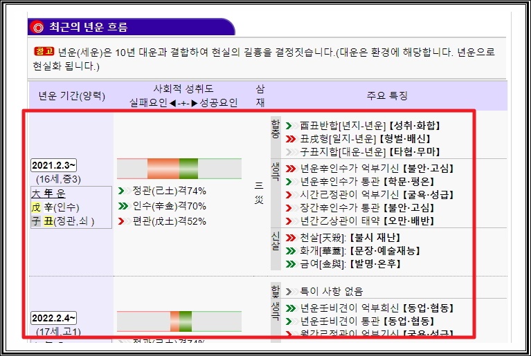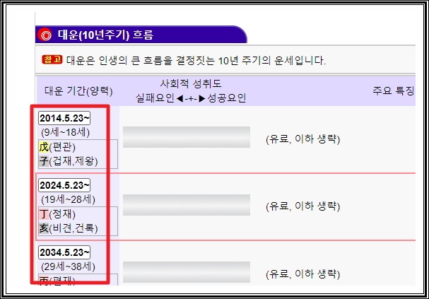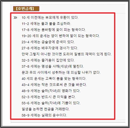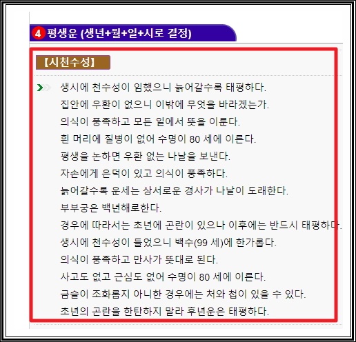 11. 평생운을 보면 이렇게 나이대에 따라 어떤 운명을 맞이하는지 쉽게 알 수 있습니다.