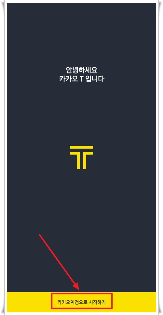 2. 처음 카카오 T 앱을 실행하면 위치와 전화, 전화번호에 대한 액세스를 허용해 달라는 문구가 나오는데요. 앱 사용 중에만 허용한다고 선택하셔도 됩니다. 이것을 통해 나의 위치를 콜택시에 자동으로 알려 주기 때문에 꼭 필요한 기능이에요. 이후 카카오 계정으로 시작하기 버튼을 눌러 주세요. 우리나라 사람이라면 거의 대부분 카카오톡을 사용하고 있습니다. 그렇기 때문에 이 계정을 갖고 있을 거예요.