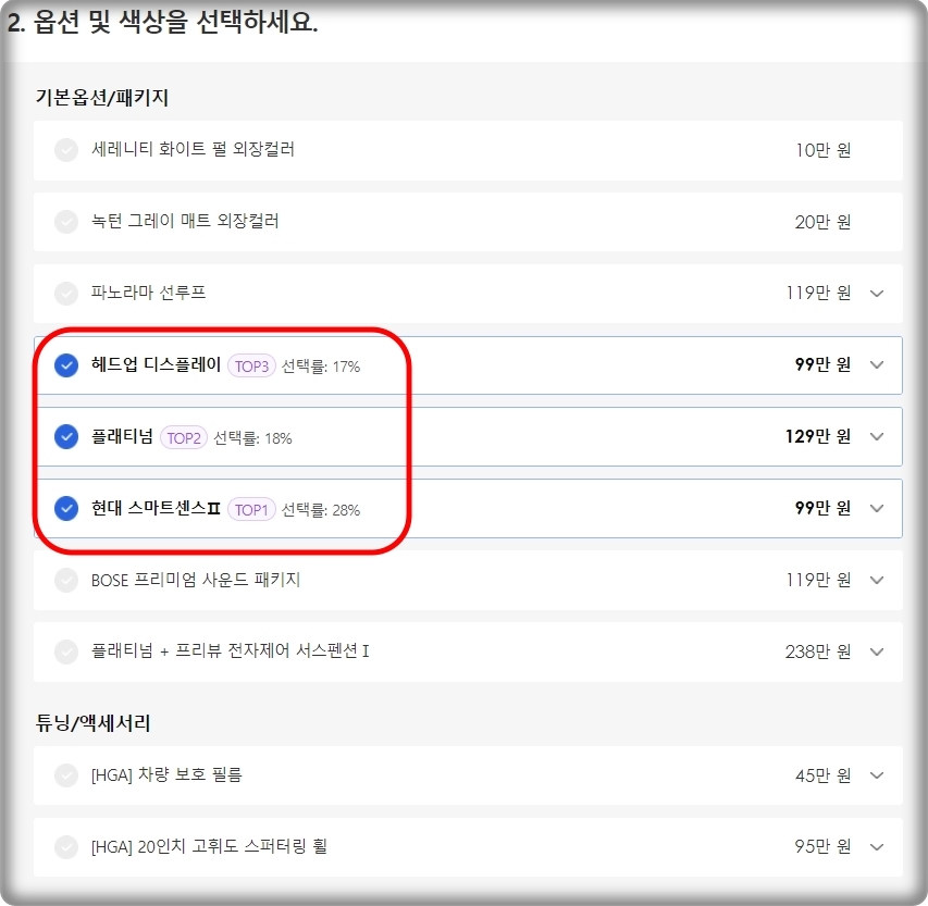 추가적으로 세부모델에 관련하여 사람들이 어떤 것을 선호하는지 확인할 수 있습니다. TOP 표시를 참고하면 되는데요. 옆에 있는 버튼을 눌러 보면 고객 선호도 데이터를 이용한다고 하네요.