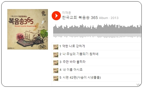 이 분야에서 유명한 곡들로 구성된 노래를 찾아보았는데요. 우리 때문에, 마음이 상한 자를, 하나님의 음성을 듣고자 기도하면, 사랑하는 나의 아버지, 내 안에 사는 이, 약한 나를 강하게, 나의 예배, 주께 가오니, 주의 인자하심이, 나의 모습 나의 소유 등의 곡을 찾아 보았습니다. 수백 곡 이상을 바로 듣기 가능한데요. 여기에 더하여 유명한 "한국교회 복음송 365 앨범"도 있네요.