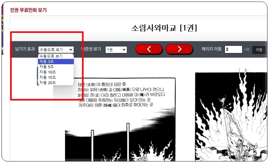 일일이 페이지를 넘길 때 마우스로 클릭하려면 조금 귀찮죠. 이런 경우에는 좌측 상단에 있는 넘기 효과 기능을 활용해 보세요. 자동으로 일정 시간이 흐르면 다음 페이지로 넘어갑니다.