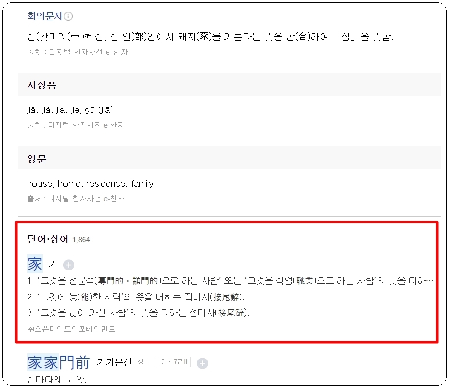 저는 "집 가"라는 문자를 클릭해 보았습니다. 이에 따라 해당 한자에 대한 부수, 모양자, 총 획수, 유니코드, 난이도, 뜻 등 다양한 사전 정보를 얻을 수 있었습니다. 연관 단어에 속하는 유의어도 정말 많네요. "획순 보기"를 통해 어떤 순서로 쓰면 되는지 배울 수 있었어요.