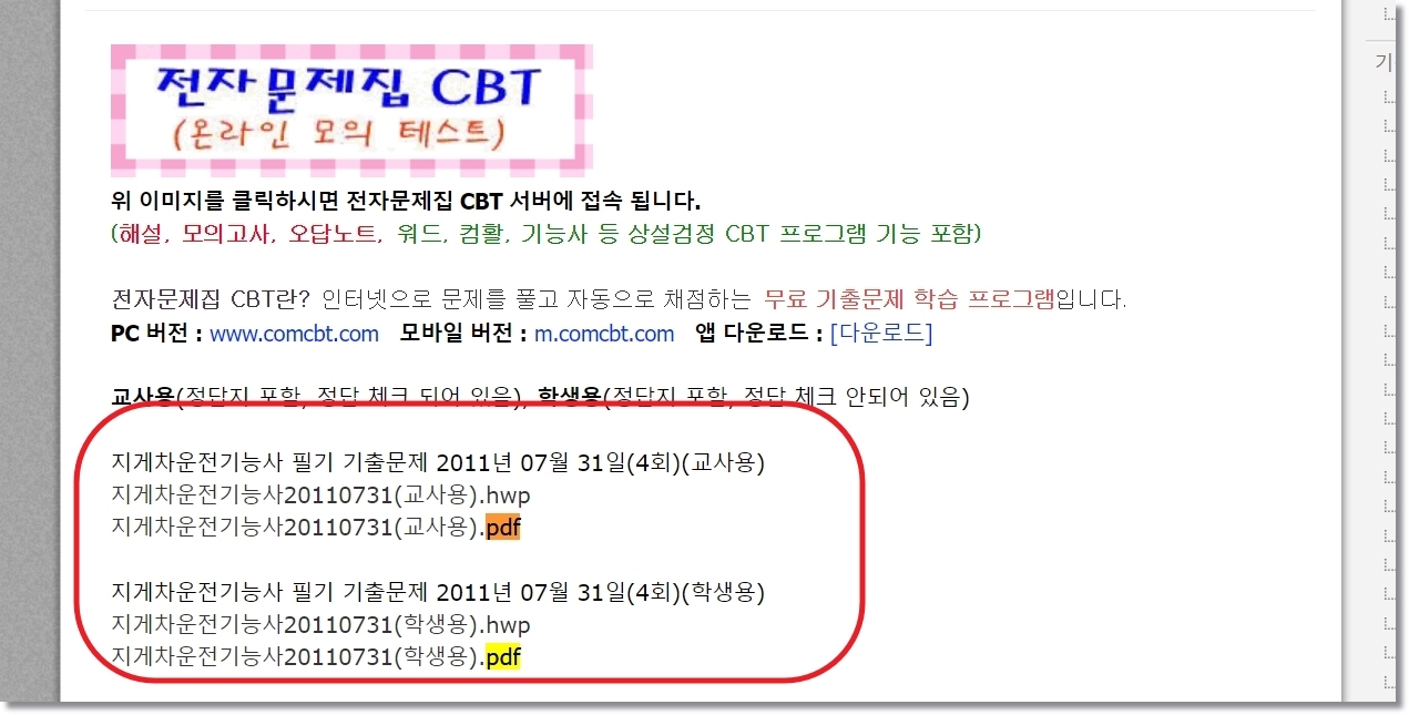 자격증 기출문제 전문 사이트인 CBT를 아시나요? 이곳의 경우 지게차 필기시험 대비 자료는 물론이고, 여러 가지 많은 자격증에 대한 자료를 제공하고 있는 곳인데요. 이번 시간에는 이곳을 이용한 방법을 알려드리겠습니다. 그럼 사이트(링크: 전자문제집 CBT 사이트)에 접속해 주세요.