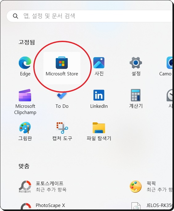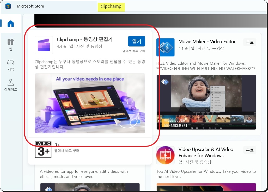 혹시 클립챔프가 설치가 되어 있지 않을 수 있는데요. 걱정하지 마세요. "마이크로소프트 스토어" 앱을 이용하여 해당 프로그램을 다운로드 받으면 됩니다. 스토어 앱을 실행한 후 해당 프로그램을 찾아 설치해 주세요. 무료로 설치 및 사용할 수 있습니다.