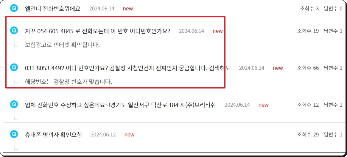 결과 화면에서 우측에 보면 추가 메뉴가 있습니다. 모르는 전화번호를 검색했음에도 만족스러운 결과가 나오지 않을 수 있습니다. 이러한 경우에 오른편에 있는 "묻고답하기" 메뉴를 클릭해보세요. 그럼 이렇게 질문과 답을 통해 모르는 전화번호에 대하여 알아볼 수 있습니다.