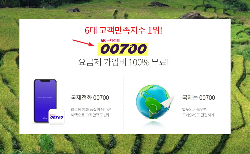 많은 사람들에게 익숙한 00700은 에스케이의 국제전화 서비스입니다. 고객만족도 1위라고 하오니 참고하시길 바랍니다. 그럼 국제전화 거는법에 대한 포스팅을 마치도록 하겠습니다.