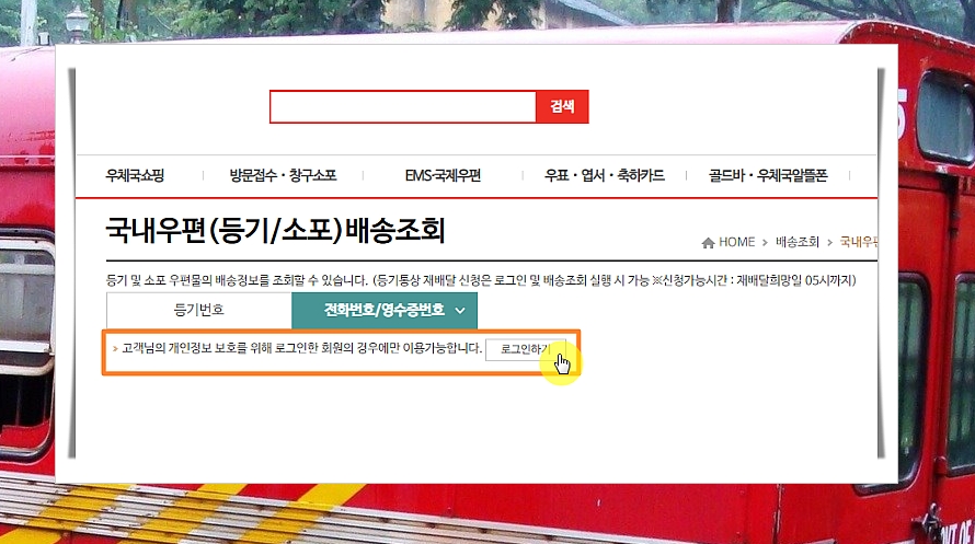 4. 참고로 전화번호와 영수증번호를 이용하여 우체국택배 등기 조회를 하기 위해서는 인터넷 우체국택배 사이트에서 로그인을 해야 합니다. 개인정보에 대한 보호를 위한 것이기 때문에 번거롭더라도 회원가입까지 진행해야 해요.