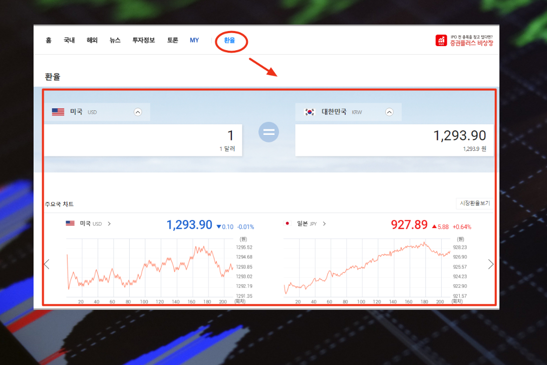 9. 그리고 다음증권 사이트에서는 환율 정보도 제공하고 있습니다. 코스피와 코스닥 지수와 함께 환율은 전 종목 주식 시세 흐름에 영향을 주는 주요인 중 하나입니다. 다음 증권에서는 전용 계산기와 함께 정보를 제공하고 있으니 일주일에 한 번 정도는 꼭 확인하시기 바랍니다.