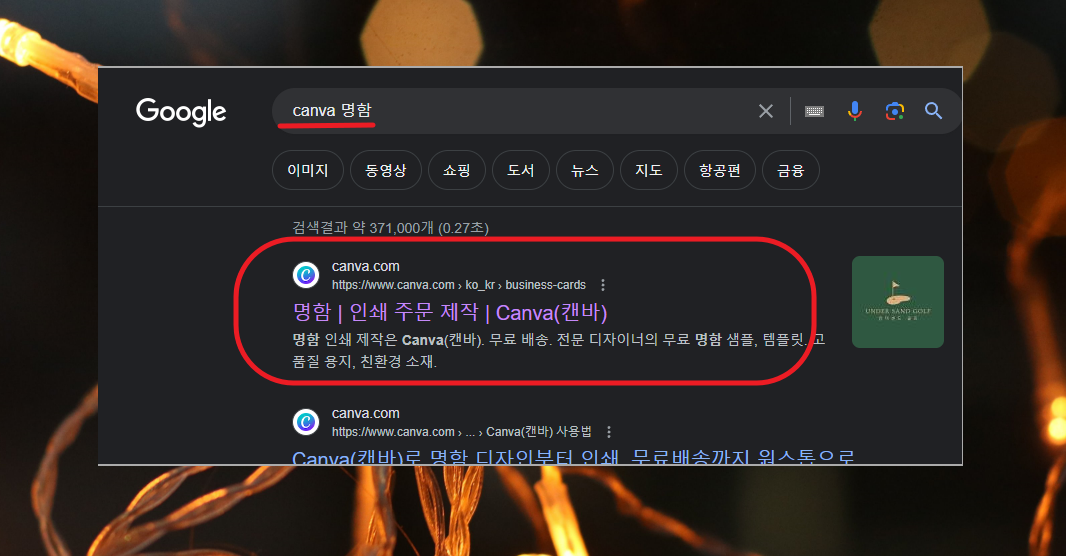 2. 제가 주로 사용하는 이미지 제작 프로그램은 Canva 입니다. 캔바(Canva)에서는 다양한 종류의 디자인 제품을 다르고 있는데요. 그렇기 때문에 "Canva 명함"으로 검색하면 번거로운 메뉴 선택 없이 바로 영화 만들기 서비스를 이용할 수 있습니다.