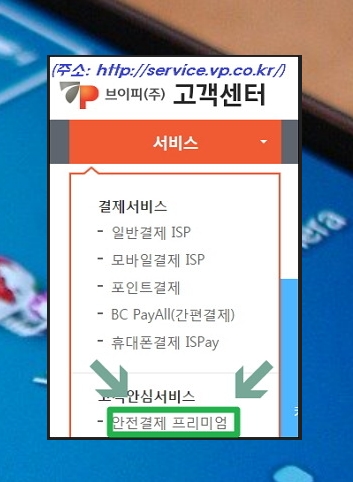 service.vp.co.kr에 접속하신 후에 안전결제 프리미엄으로 들어가주세요.