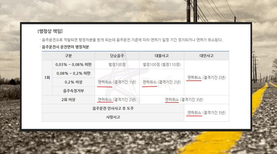 음주운전 면허취소 벌금 정확히 파악하기.