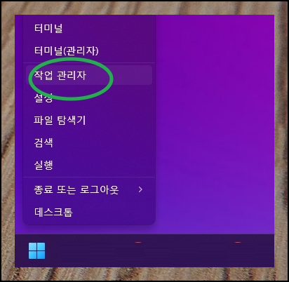 5. 이번에는 작업 관리자를 통해 자판 오류를 해결해 보겠습니다. [시작]에 우클릭을 한 후 [작업 관리자]를 실행해 주세요. 그럼 여러 가지 프로세스가 나타나는데요. 여기에서 자판 오류를 발생 시키는 원인이 될 수 있는 "Microsoft Text Input Application"을 찾아 "작업 끝내기" 실행을 해주면 됩니다.