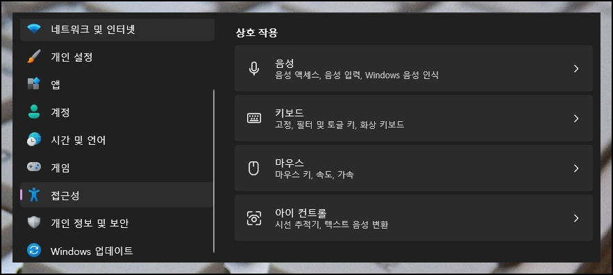 2. 노트북 키보드를 대신하여 자판 입력을 가능하게 해줄 [화상 키보드] 기능을 켜 주어야 합니다. 이전 단계에서 메뉴를 선택하면 나온 화면에서 해당 기능을 바로 찾을 수 있어요.