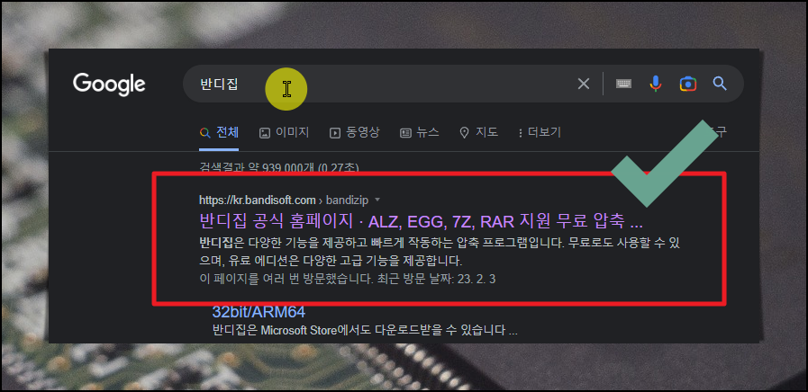 국내에서 압축에 관련하여 가장 많이 쓰이는 것은 "알집"과 "반디집"입니다. 저는 두 가지 모두 사용하지만, 이번 시간에는 반디집을 기준으로 이용 방법을 설명 드리겠습니다. 일단 공식 사이트에 접속하여 프로그램을 다운 받아 설치해야 합니다.