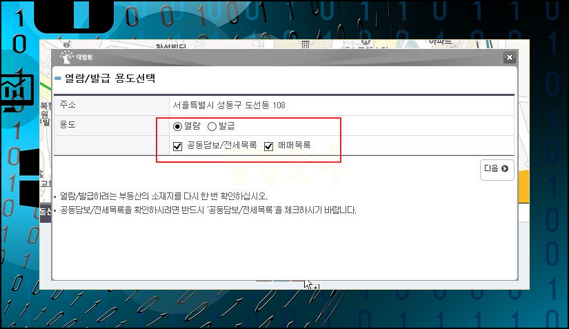 공동담보 또는 전세목록매매목록을 확인할 수 있는 등기부등본을 열람하거나 발급이 가능합니다. 해당 기능은 무료가 아닌 수수료를 지불해야지 이용할 수 있는 것인데요. 일부 정보에 대한 무료열람 진행을 위해서 다음 버튼을 클릭해주세요.