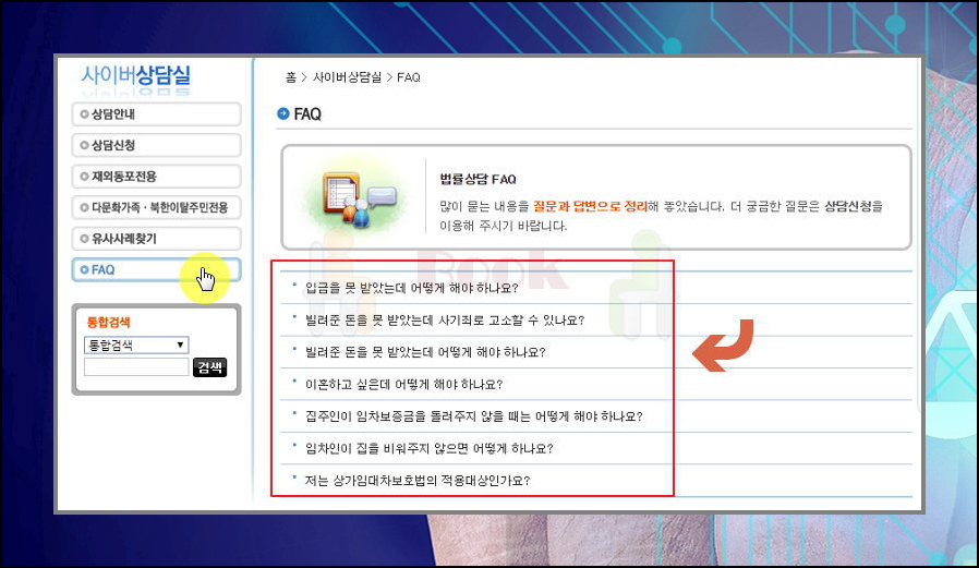 무료 법률상담센터를 찾는 이유는 다양하지만, 상당수가 유사한 문제인 경우가 있습니다. 금전 거래에서 문제가 생겼을 때, 이혼 또는 부동산에 대한 문제가 많은데요. 이에 대해서는 FAQ를 통해 따로 답변을 정리해 놓은 것을 살펴볼 수 있사오니 참고하시면 됩니다.
