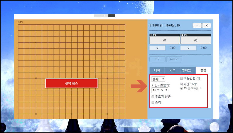 본인이 직접 방을 만들어 게임하기 원한다면 '방 만들기' 버튼을 클릭하면 되는데요. 우측에 있는 설정에서 바둑의 룰을 정할 수 있습니다. 무료 서비스임에도 필요한 기능이 대부분 마련되어 있습니다.