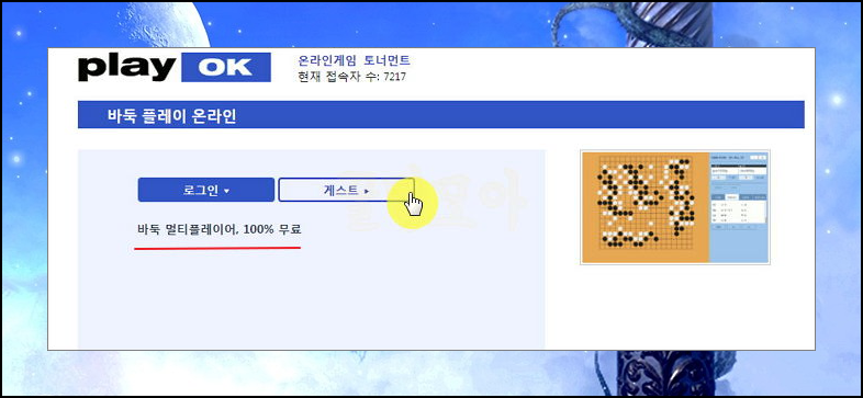 100% 무료 게임하기가 가능합니다. 무엇보다 다른 사람들과 맞붙을 수 있는데요. 게스트를 클릭하면 회원가입을 하지 않고도 무료 바둑 게임하기 가능합니다. 물론 로그인을 하게 되면 이력 관리를 할 수 있다는 장점이 있어요.