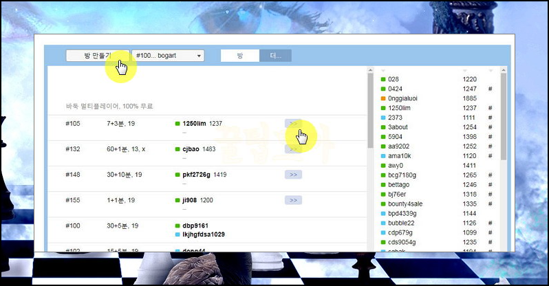 대전을 펼치고 있는 방에 가면 관전도 가능합니다.