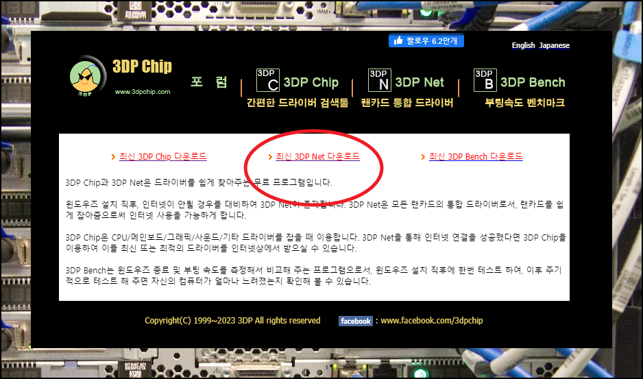 지금까지 제가 알려드린 방법을 따라서 진행했음에도 문제가 해결되지 않을 수 있습니다. 이런 경우에는 랜카드 드라이버에 관련된 문제일 가능성이 높습니다. 랜카드는 네트워크 연결해 관련된 주요한 기기 인데요. 딱 맞는 드라이버 프로그램을 설치해 줘야 제대로 작동합니다. 이런 것을 도와주는 프로그램이 3dp net 프로그램을 이용해 보겠습니다. 검색을 통해 해당 프로그램을 무상으로 제공하는 사이트에 접속해 주세요.