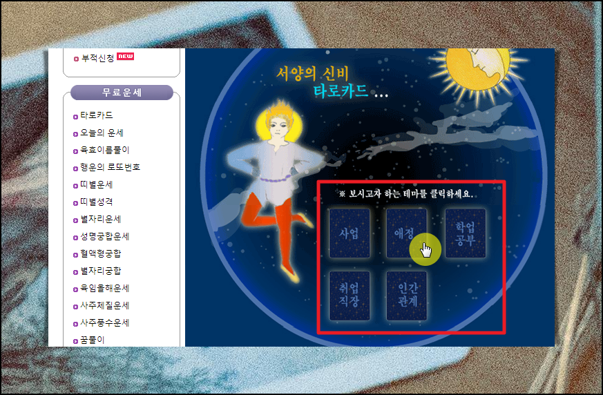 사업, 애정, 학업, 인간관계에 대해 알아볼 수 있는데요.