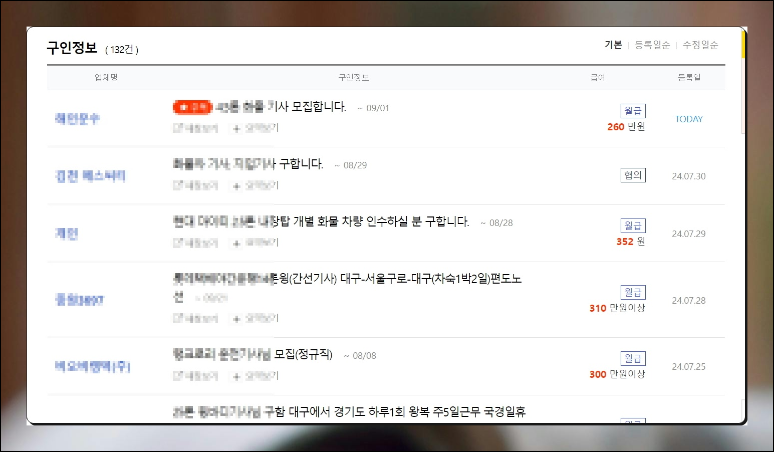 검색 결과가 나왔는데요. 간단한 표를 통해 업체명, 구인정보, 급여, 등록일 정보를 확인할 수 있었어요. 마음에 드는 일자리가 있다면 구인정보 부분을 클릭해 보세요.