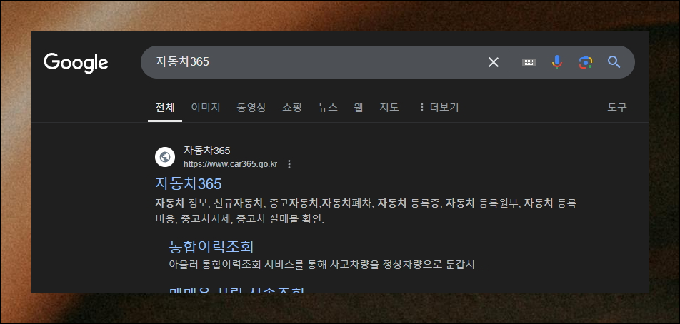 시작 페이지에서 자동차 365 바로가기를 클릭해주세요. 침수 차량 확인이나 허위매물 신고도 가능한 포털입니다. 다양한 서비스를 이용하실 수 있어요.