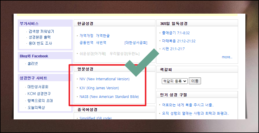 영어가 능숙하지 않으신 분들을 위해 성경 한영 대역 서비스도 있습니다. 홀리바이블 사이트에서 제공하는 기능인데요. 구체적인 이용 방법을 알려드리겠습니다.