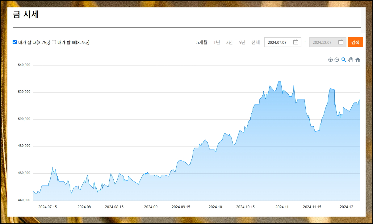 시각적인 그래프를 통해 최근 7일간의 금시세 변동을 쉽게 파악할 수 있어요. 현재는 소폭 상승세를 보이고 있는데, 1돈 기준으로 보시면 됩니다. 참고로 1돈은 3.75g인데, 대부분의 거래소에서 사용하는 기본 단위예요.