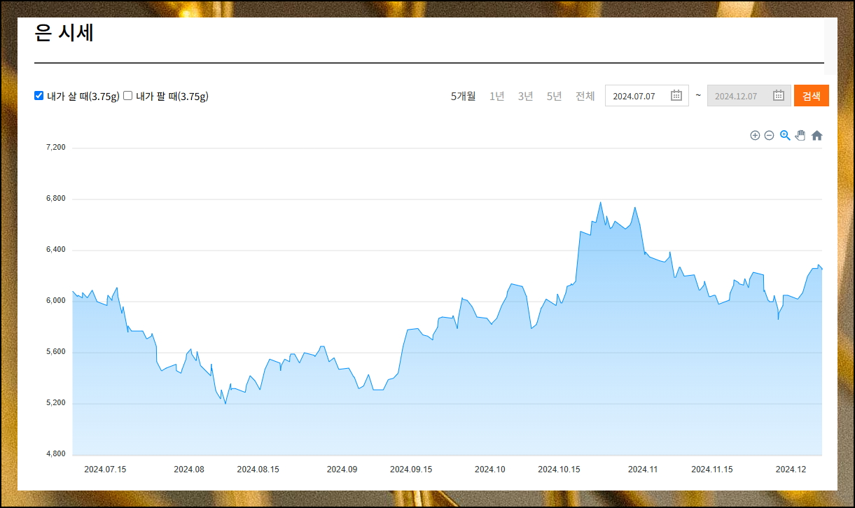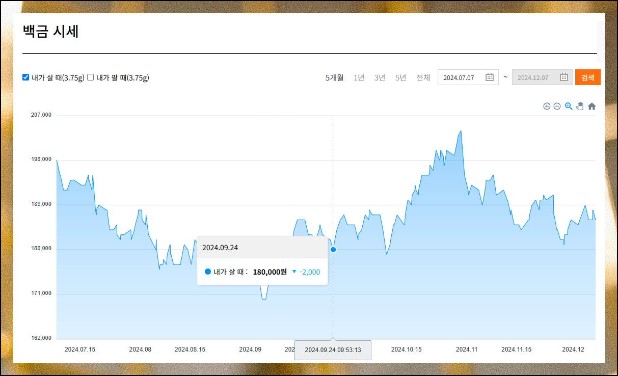 백금 역시 지난 6일 동안 지속적인 상승세를 보여주고 있어요. 백금도 1돈당 3.75g을 기준으로 하며, 금시세와 함께 확인하면 투자 결정에 도움이 됩니다.