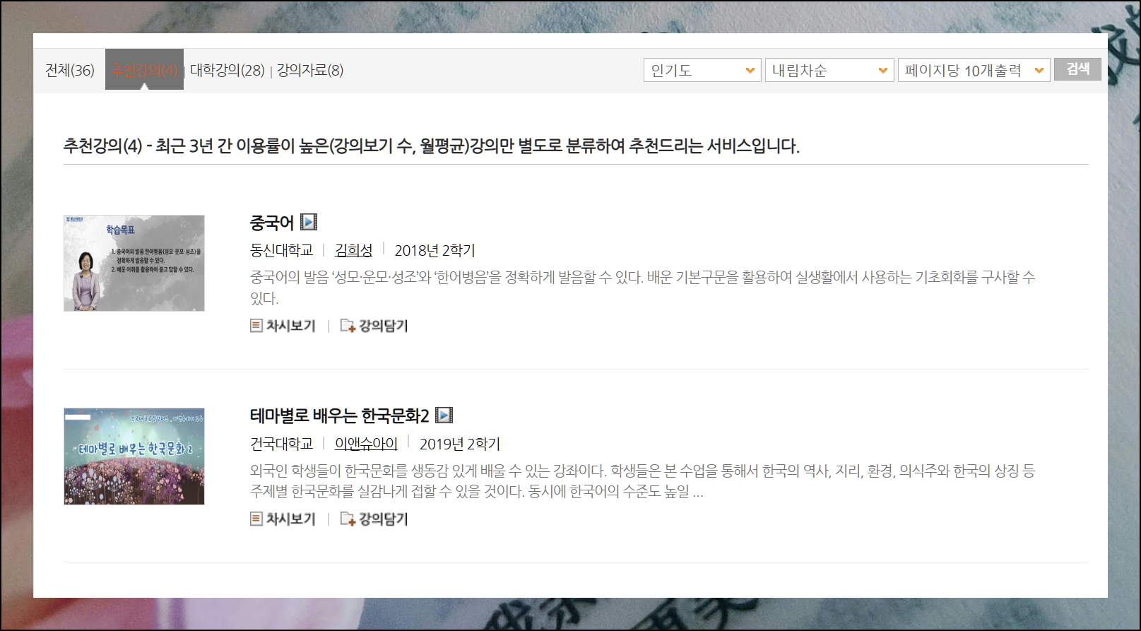선택이 어렵다면 인기도 순으로 정렬해보세요. 많은 학습자들이 선택한 회화 강의들을 쉽게 찾을 수 있어요. 기본적인 의사표현을 주로 다루는 배우는 강의가 특히 인기가 많답니다.
