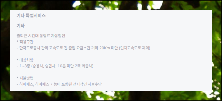 24시간 고객 지원과 전국 어디서나 가능한 즉시 결제 서비스로 더욱 편리한 고속도로 이용이 가능합니다. 지금 바로 스마트한 운전의 첫걸음을 시작해보세요.