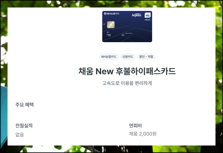 농협의 New후불하이패스는 기본 연회비 없이 제휴 연회비 2천원만 내시면 되요. 이는 시중 다른 은행들과 비교해도 동일한 수준이에요. 선불카드는 연회비가 없지만 미리 충전해야 하는 불편함이 있죠. 농협 홈페이지에서 신청 버튼만 누르면 바로 발급이 가능해요. 후불카드로 결제하면 매달 청구서로 편리하게 정산할 수 있습니다.