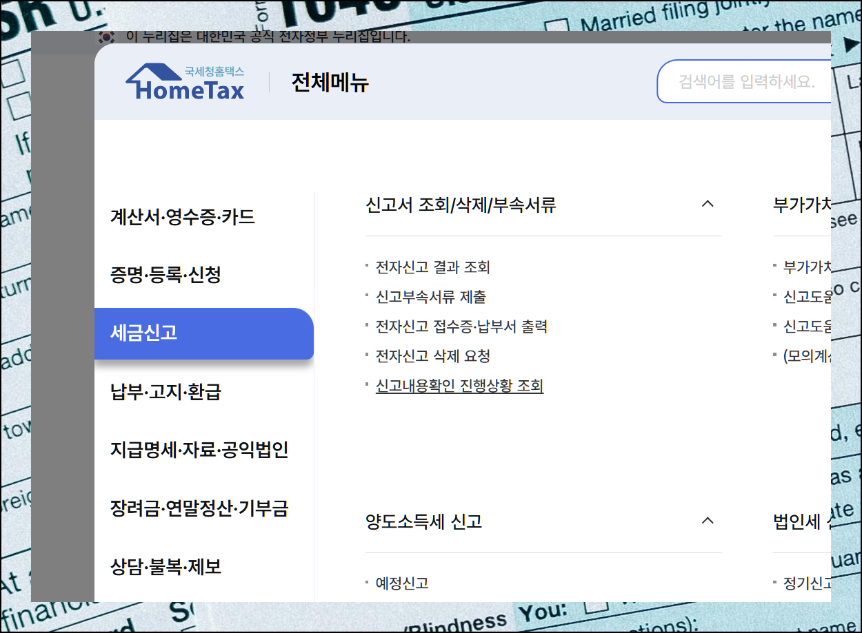 홈텍스는 원천징수를 포함한 세금 관련 민원 서비스를 제공하는 국세청의 온라인 사이트에요. 이곳에서는 이행상황신고서를 포함한 다양한 문서 양식을 제공하고 있습니다. 정기는 물론이고, 반기신고도 이곳에서 처리할 수 있어요.