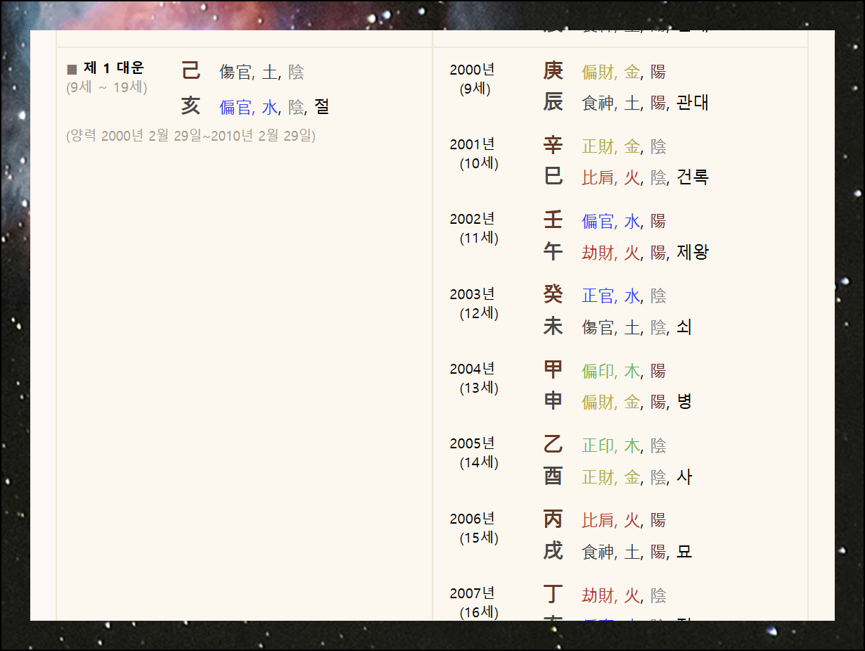 무료 만세력 보기, 하루부터 10년 단위로 나의 운세 보기