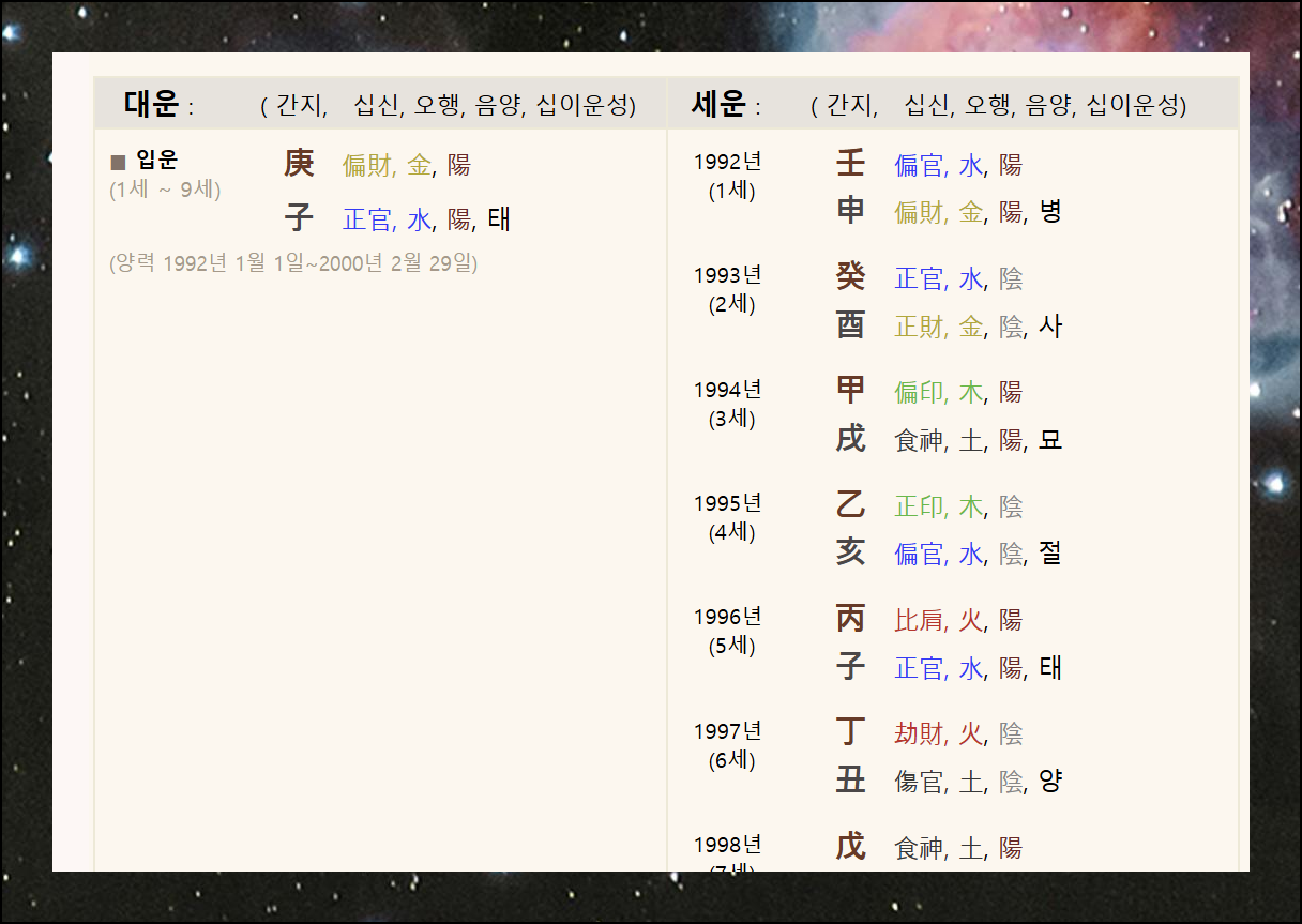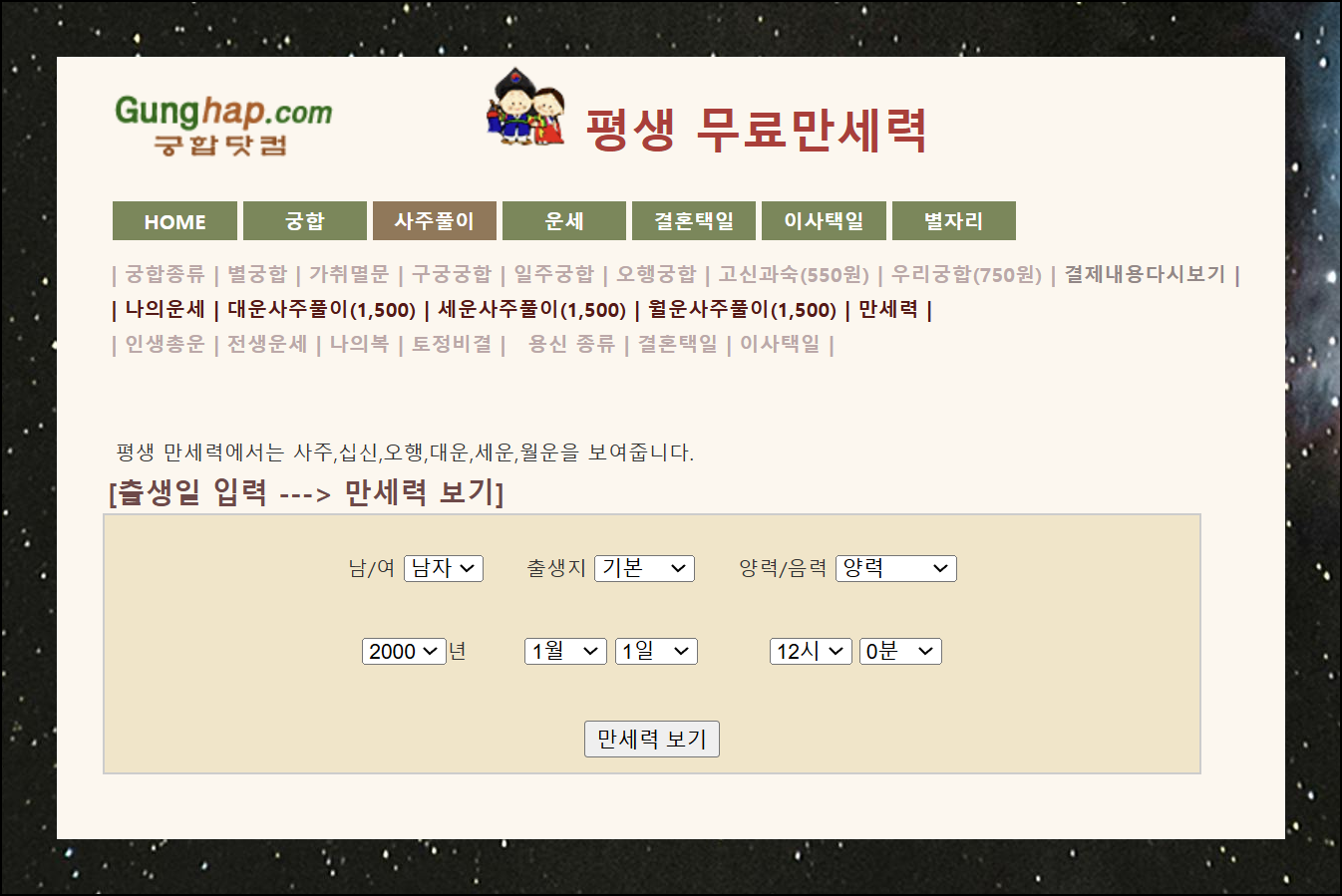 무료 만세력 보기, 하루부터 10년 단위로 나의 운세 보기