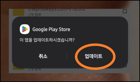 APK 파일을 터치하면 설치 허가를 묻는 창이 나타납니다. play 스토어 설치를 위해 예스 버튼을 누르면 작업이 진행되는데요. 기존에 스토어 앱이 탑재되어 있는 기기라면 저처럼 업데이트 버튼이 나타날 수 있습니다. 업데이트 또는 설치가 완료되면 바로 실행해서 구글 계정으로 로그인을 하면 돼요.