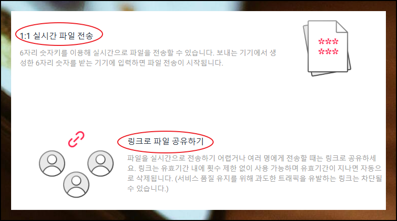 무선 전송 기술이 워낙 발달하여 케이블 없이도 대용량의 데이터를 순식간에 전송할 수 있습니다. 사용 방법이 쉽기 때문에 누구나 바로 이용이 가능해요. 무엇보다 무료로 사용할 수 있으니 부담도 전혀 없습니다.