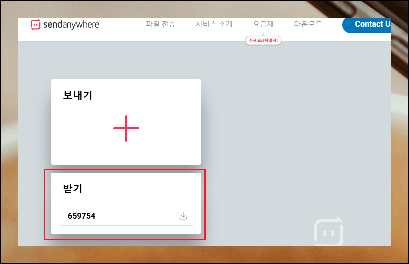 앞서 스마트폰 화면에 6자리 숫자가 나타난다고 했는데요. 이 번호를 컴퓨터에서 입력해주면 됩니다. 참고로 사진 옮기기의 반대 작업도 가능한데요. 데스크톱의 자료를 스마트폰으로 보내고 싶다면 해당 사이트에 있는 [보내기] 기능을 이용하면 됩니다.