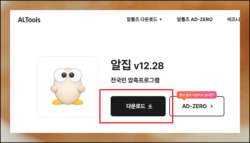 압축 해제를 위해 "알집"이라는 소프트웨어가 필요해요. 컴퓨터로 가져온 자료를 보기 위한 필수 도구입니다. 알툴즈 공식 사이트에서 무료로 받을 수 있어요.