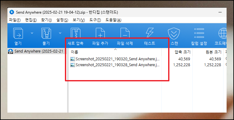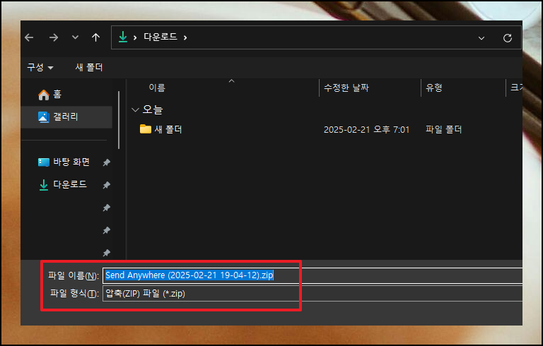 휴대폰 사진을 옮기는 작업을 진행하기 위해서는 해당 파일을 어디에 저장하는지 위치를 선택해줘야 하는데요. 위치 선택 후에는 사진 파일 전송이 시작됩니다. 파일이 여러 개인 경우에는 zip 포맷으로 압축이 되어 전송이 되는데요. 이것을 풀어줘야 합니다.