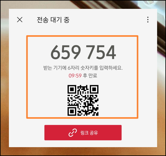 앞서 스마트폰 화면에 6자리 숫자가 나타난다고 했는데요. 이 번호를 컴퓨터에서 입력해주면 됩니다. 참고로 사진 옮기기의 반대 작업도 가능한데요. 데스크톱의 자료를 스마트폰으로 보내고 싶다면 해당 사이트에 있는 [보내기] 기능을 이용하면 됩니다.