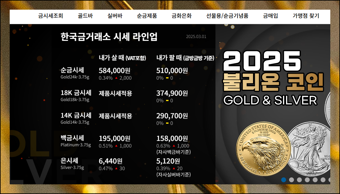 메인화면에서 여러 종류의 광물에 대한 구매가와 판매가를 한 번에 살펴볼 수 있어요. 그래프와 함께 더 자세한 금값시세를 알고 싶다면 좌측 상단에 위치한 '조회' 메뉴를 선택해보세요. 더 정확한 가격 정보를 얻을 수 있습니다.