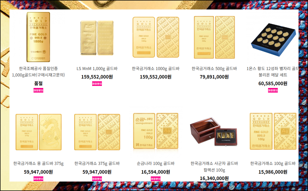 한국금거래소를 통해 실제 금괴 구입이 가능합니다. 10kg 단위는 없지만 1kg 골드바가 판매 중이니, 10개를 마련하면 원하는 무게가 됩니다. 1kg 금괴의 금액은 159,552,000원이니, 총액은 약 15억 9천5백5십만 원 정도예요. 이렇게 고가의 자산은 안전한 보관이 필수이므로 보안 금고 설치를 함께 검토하세요.