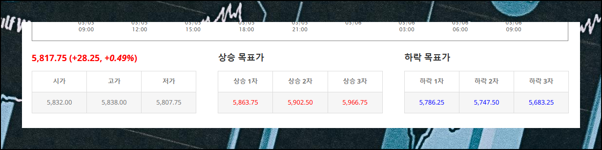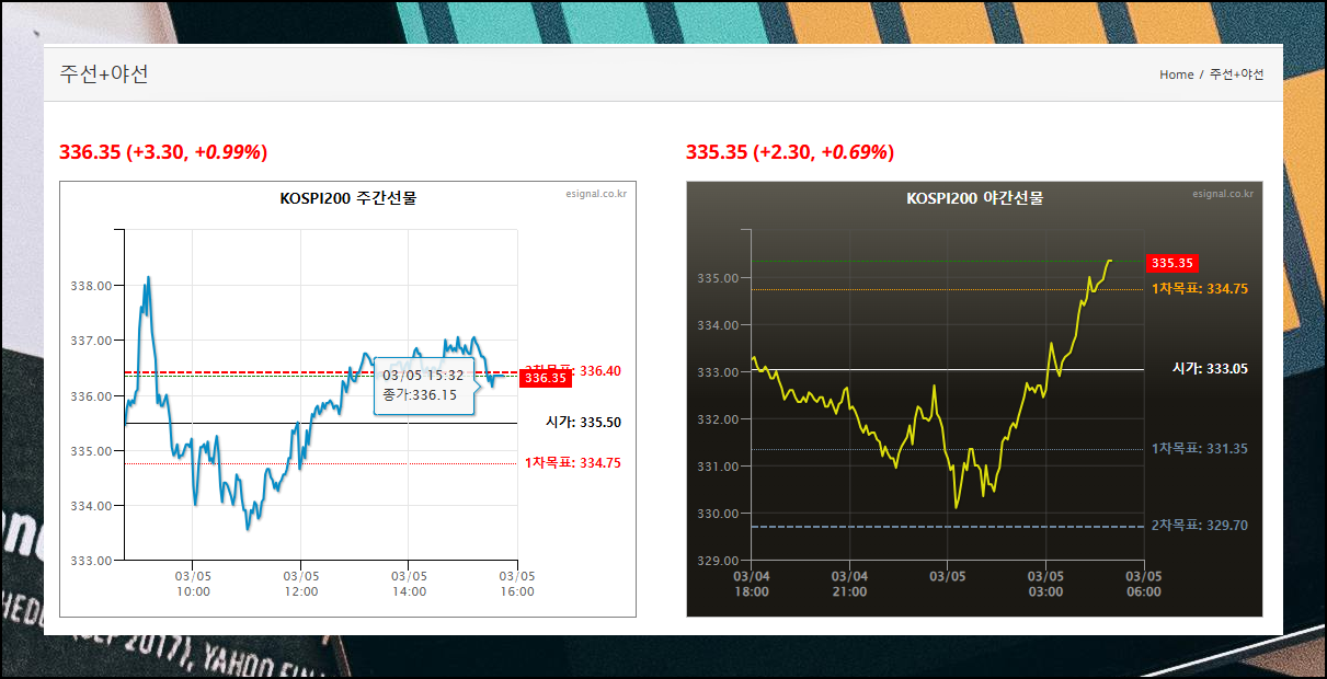 KOSPI200 야간선물지수 차트에는 시가, 1차목표, 2차목표 등이 표시되어 있어요. 이를 통해 마켓 흐름을 파악하고 최적의 투자 타이밍을 잡는 데 실시간 정보가 유용합니다.
