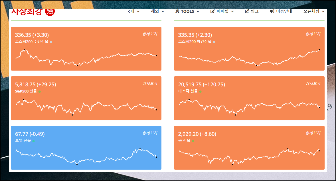 글로벌 금융시장에서는 밤낮 없이 거래가 이루어지는 만큼 국내 투자자들도 이 부분을 예의주시합니다. 그런만큼 야간 시장의 동향 또한 매우 중요한 정보에 속하는데요. 이번 시간에는 실시간 야간선물지수 조회 서비스를 알려드리겠습니다.