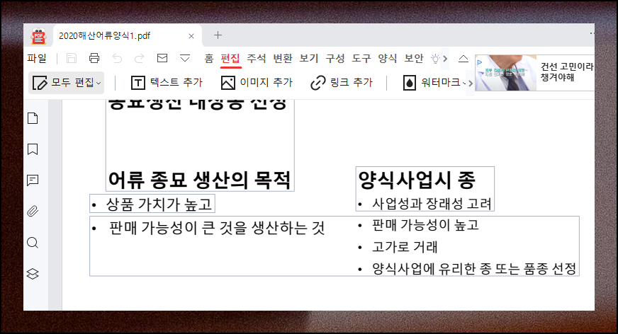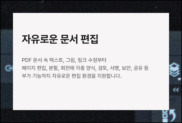 특히 원본 파일이 없어도 PDF 내용을 직접 편집할 수 있어 업무 효율성을 크게 높여줍니다. 워터마크, 머리글, 꼬리글 기능까지 무료로 사용할 수 있어요.