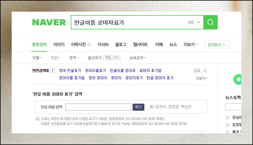 네이버에서 한글이름 로마자표기를 검색하면 편리한 변환 도구를 바로 찾을 수 있어요. 발음에 맞게 우리말 성명을 서양식으로 바꿔주는 이 프로그램은 사용법이 간단합니다. 빈 칸에 성함을 넣고 확인 버튼만 누르면 돼요. 겉보기에는 단순해도 활용도가 높은 서비스입니다.