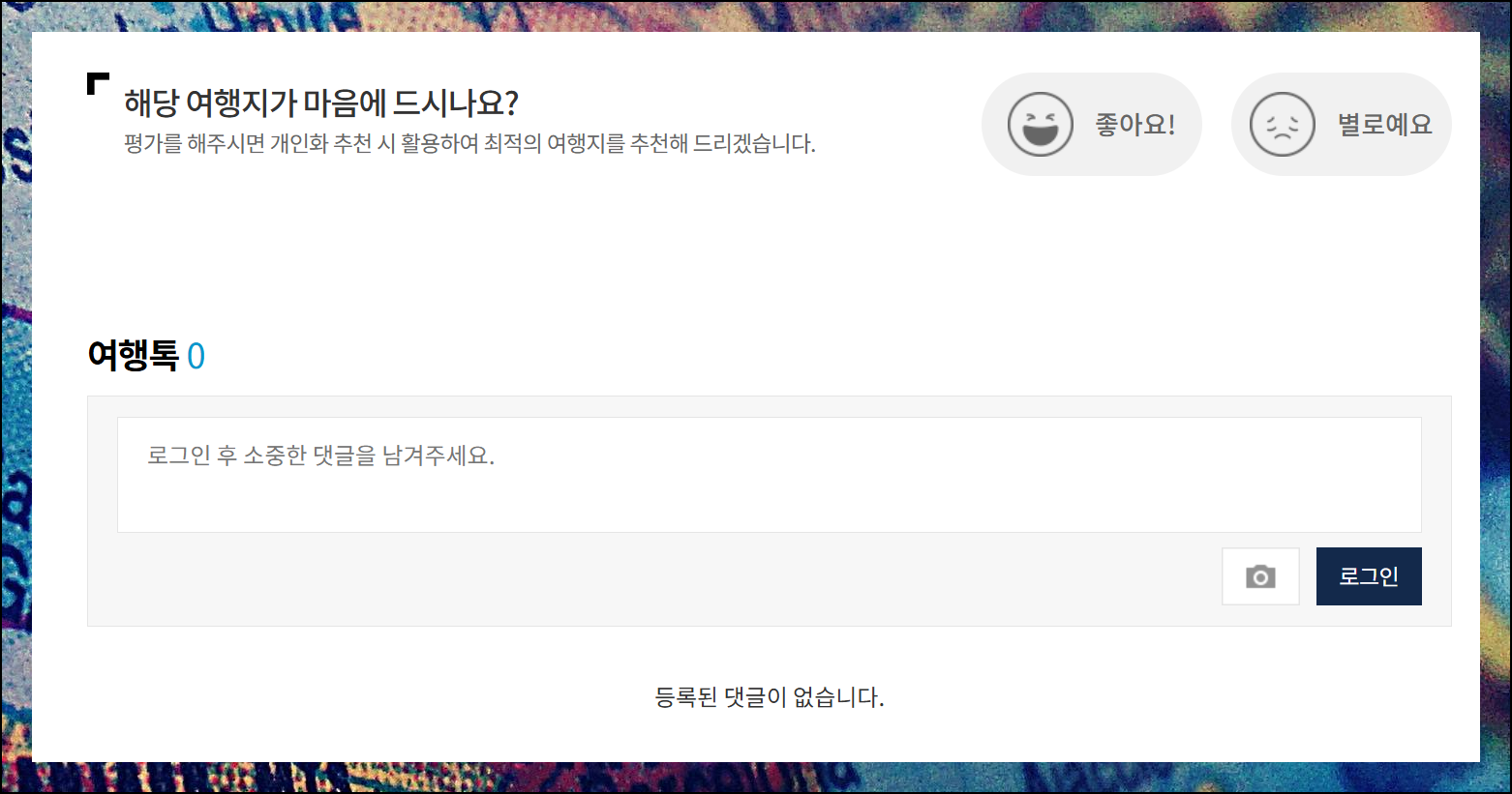 '여행 톡' 서비스에서는 해당 지역을 방문했거나 관심 있는 사람들의 후기를 보기 좋게 정리해 놓았습니다. 이러한 실제 경험담은 신뢰도가 높아 많은 여행자들이 참고하고 있습니다.
